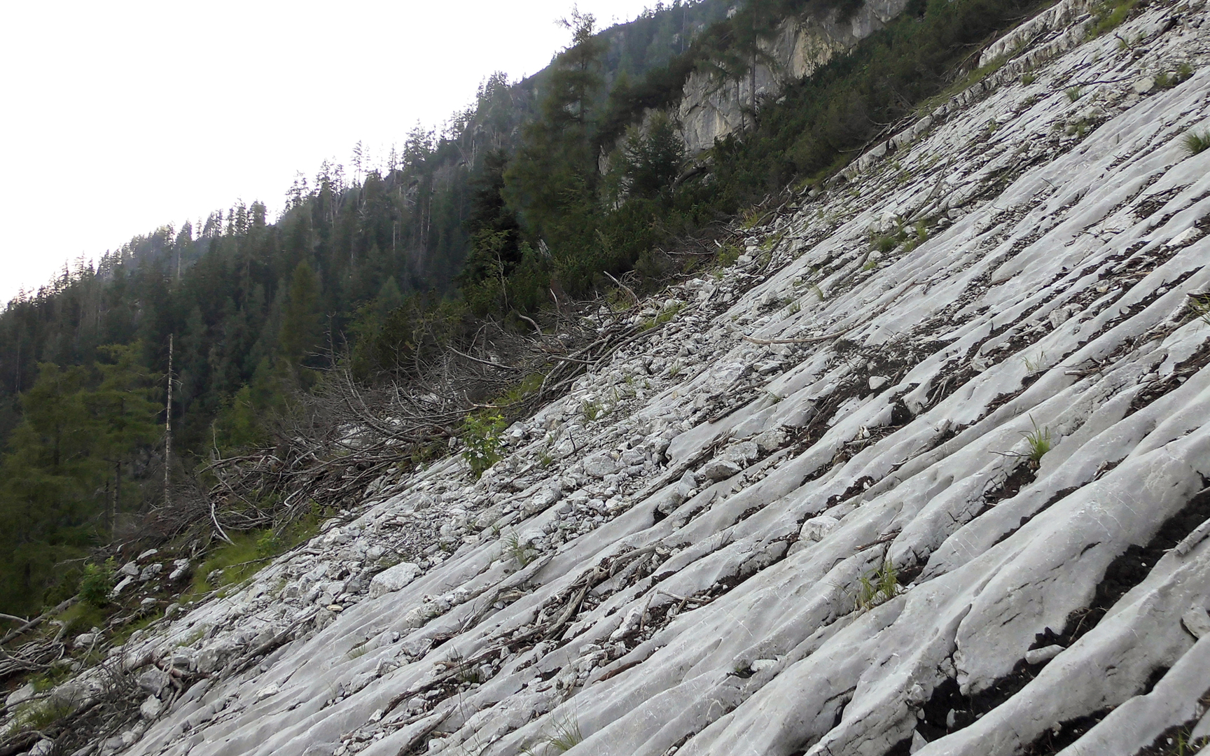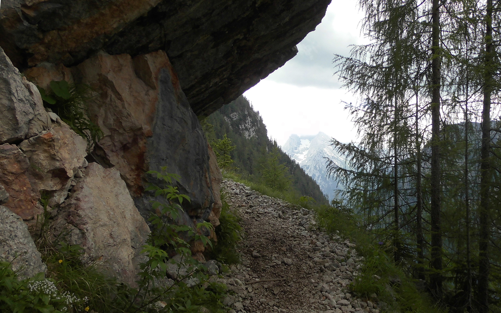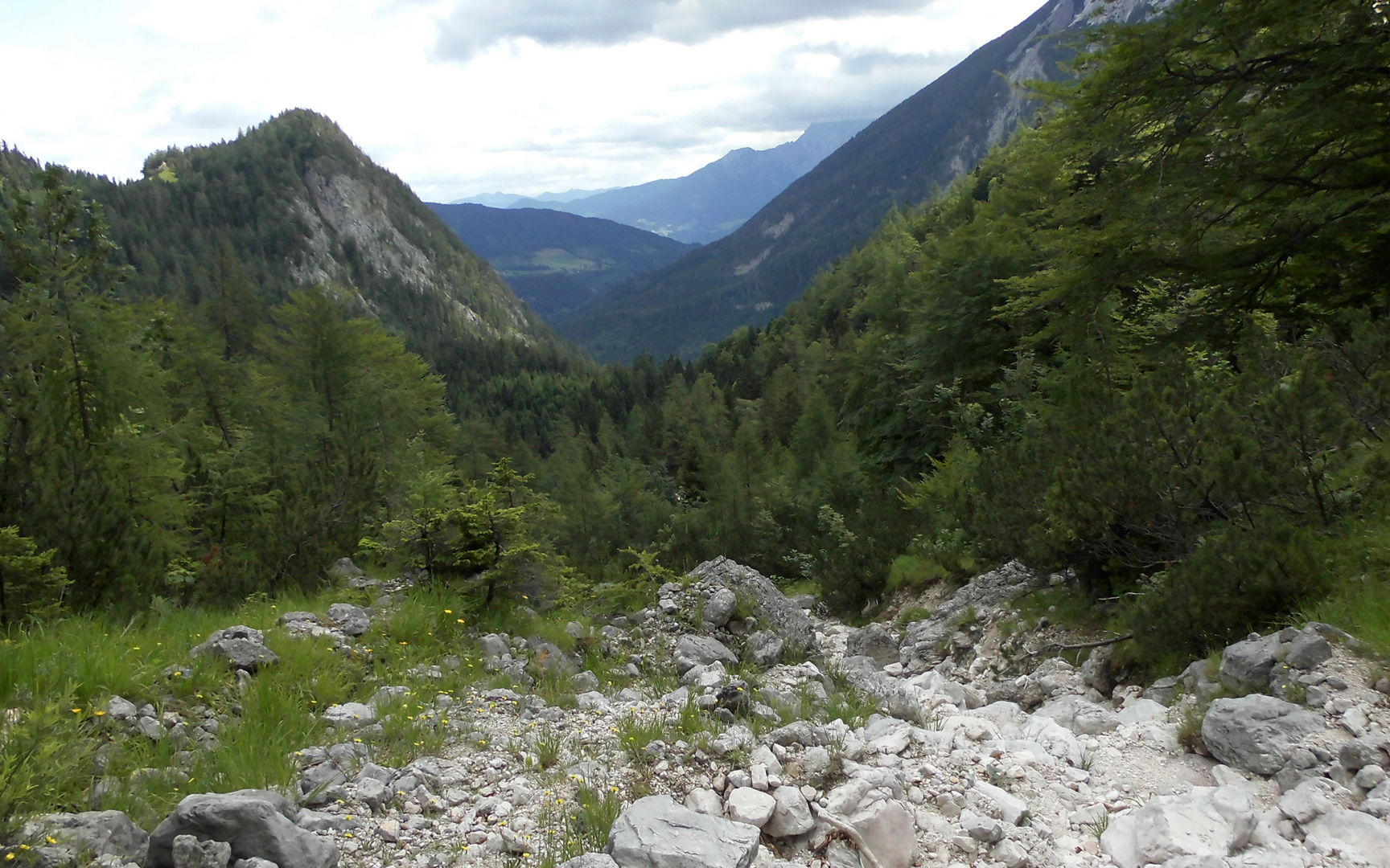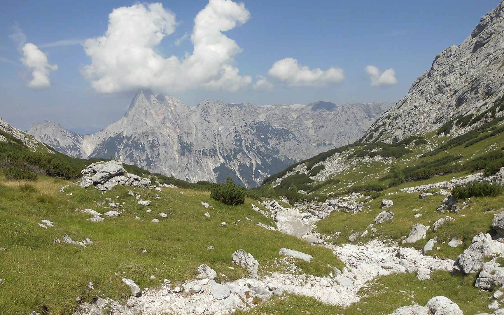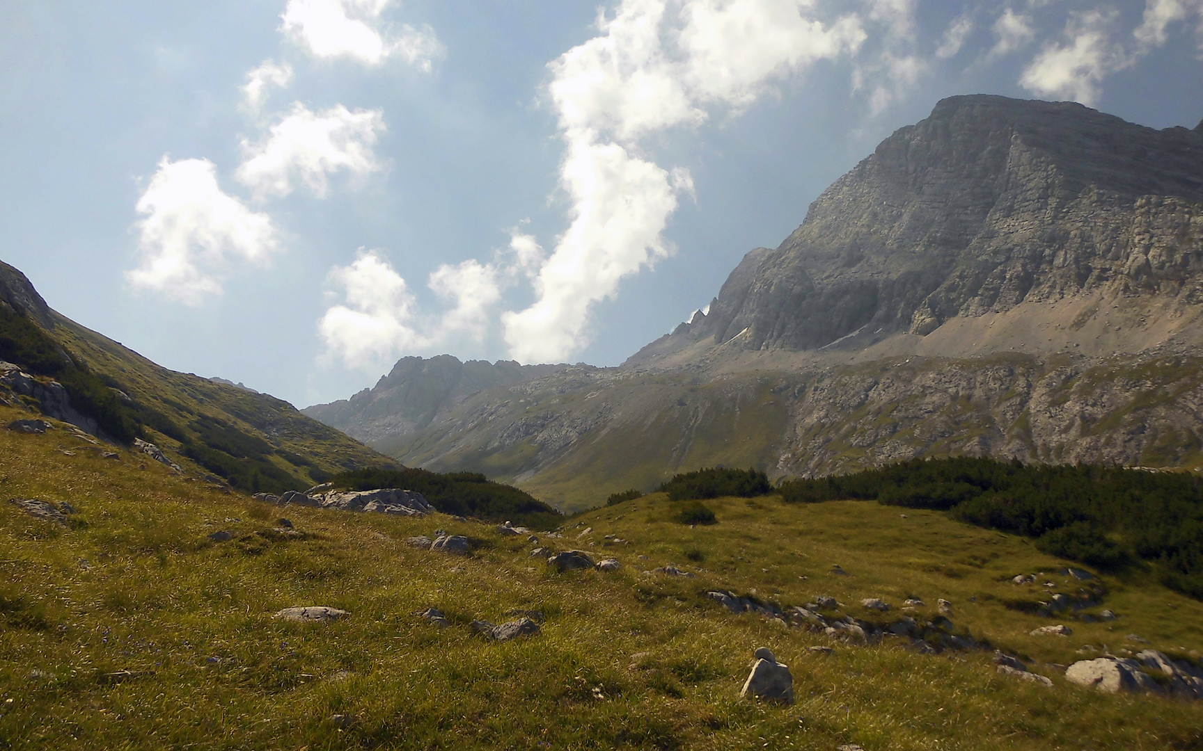 Der Steig, der früher ein Reitweg war, ist mit den Jahren zum Teil kaum noch zu finden. Lawinen haben ihn stellenweise weggeräumt, Stauden wachsen ihn zu. Für uns erschwerend kam hinzu, dass das hohe Gras der herbstlichen Vegetation den Verlauf oft nicht klar erkennen ließ.