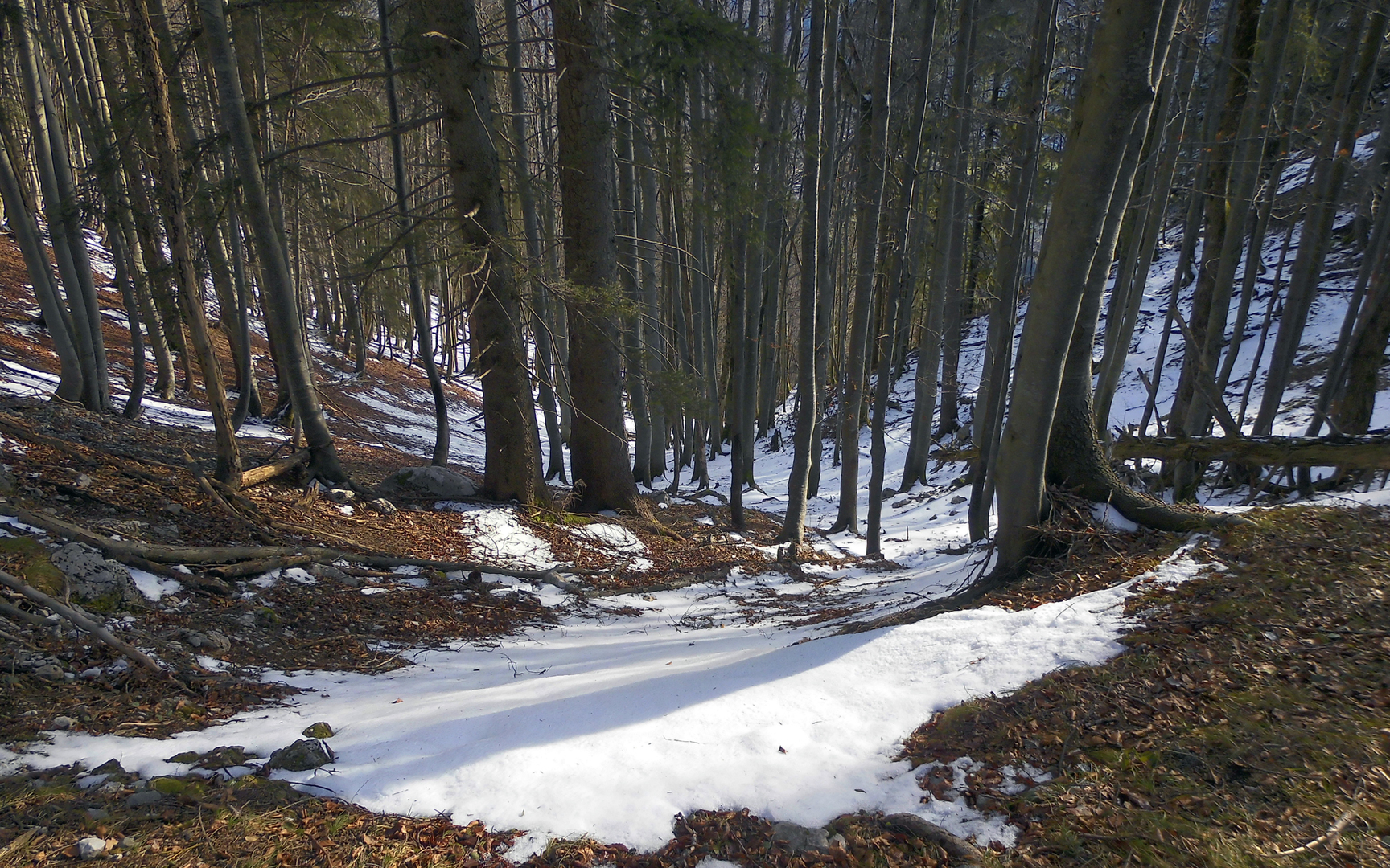 Die Bedingungen waren optimal. Es war sehr trocken, die Vegetation lag danieder, so dass der Weg gut sichtbar war. Lediglich dort, wo das Laub schon hoch am Boden lag, war meine Ortskunde gefragt.