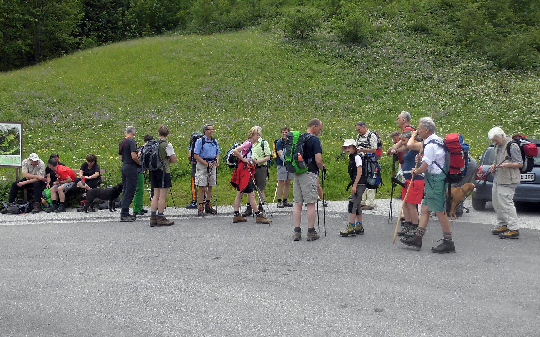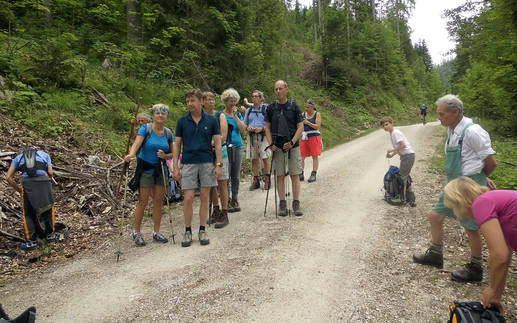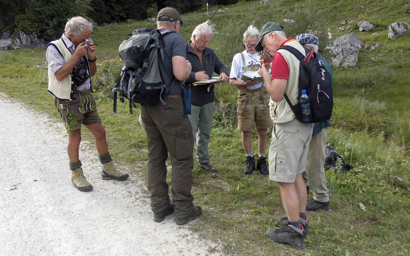 Am 13.06.2015 nahm ich an einer Botanischen Wanderung der Sektion Bad Reichenhall des DAV teil. Die Führung hatte Fritz Eberlein, Helei und ich assistierten. Es ging vom Hirschbichl die Forststraße bergauf. Am Abzweig ‚Eiblkapelle‘ nach links weiter für 50 Min. auf der Forststraße. Dann nach links ins steile Gelände auf Steigspuren in 60 Min. zum Schattseittret. Hier gab es eine längere Brotzeitpause.