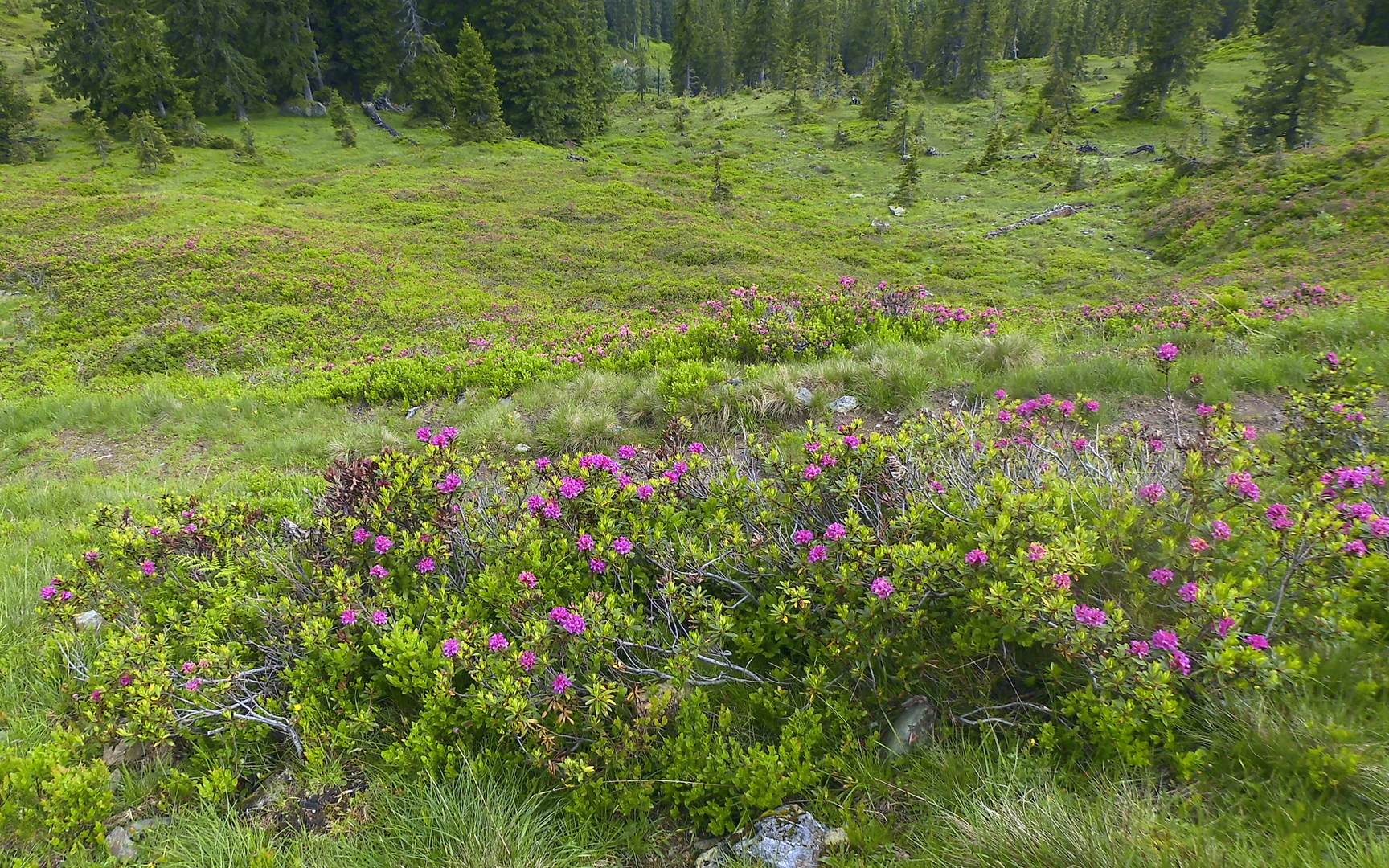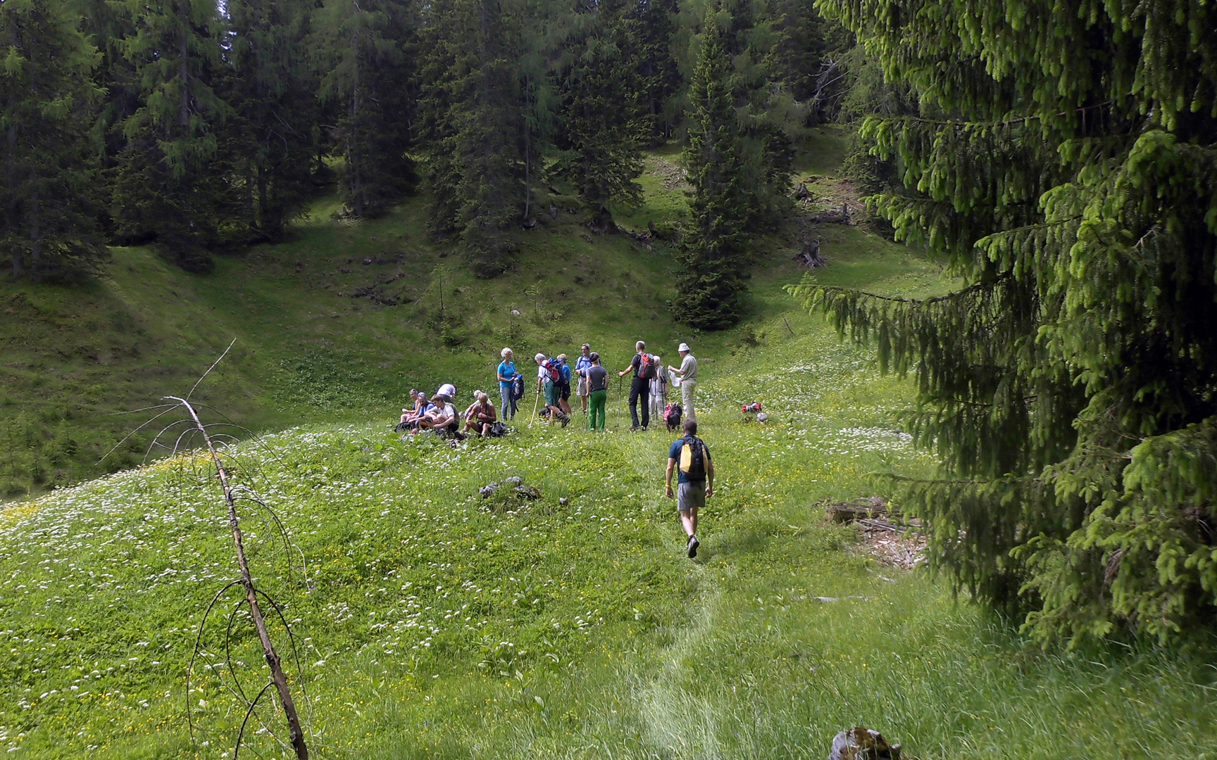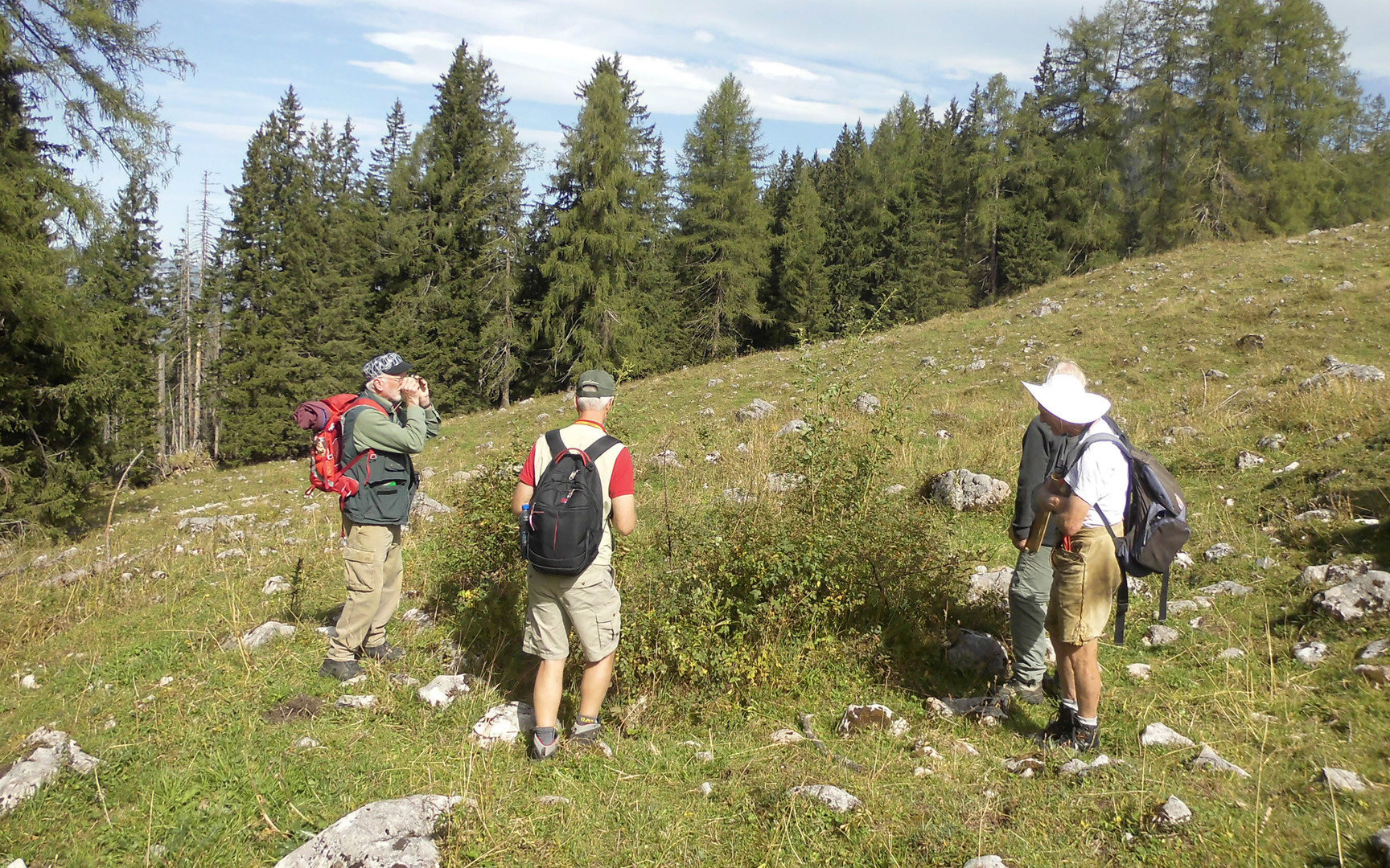 Am 13.06.2015 nahm ich an einer Botanischen Wanderung der Sektion Bad Reichenhall des DAV teil. Die Führung hatte Fritz Eberlein, Helei und ich assistierten. Es ging vom Hirschbichl die Forststraße bergauf. Am Abzweig ‚Eiblkapelle‘ nach links weiter für 50 Min. auf der Forststraße. Dann nach links ins steile Gelände auf Steigspuren in 60 Min. zum Schattseittret. Hier gab es eine längere Brotzeitpause.