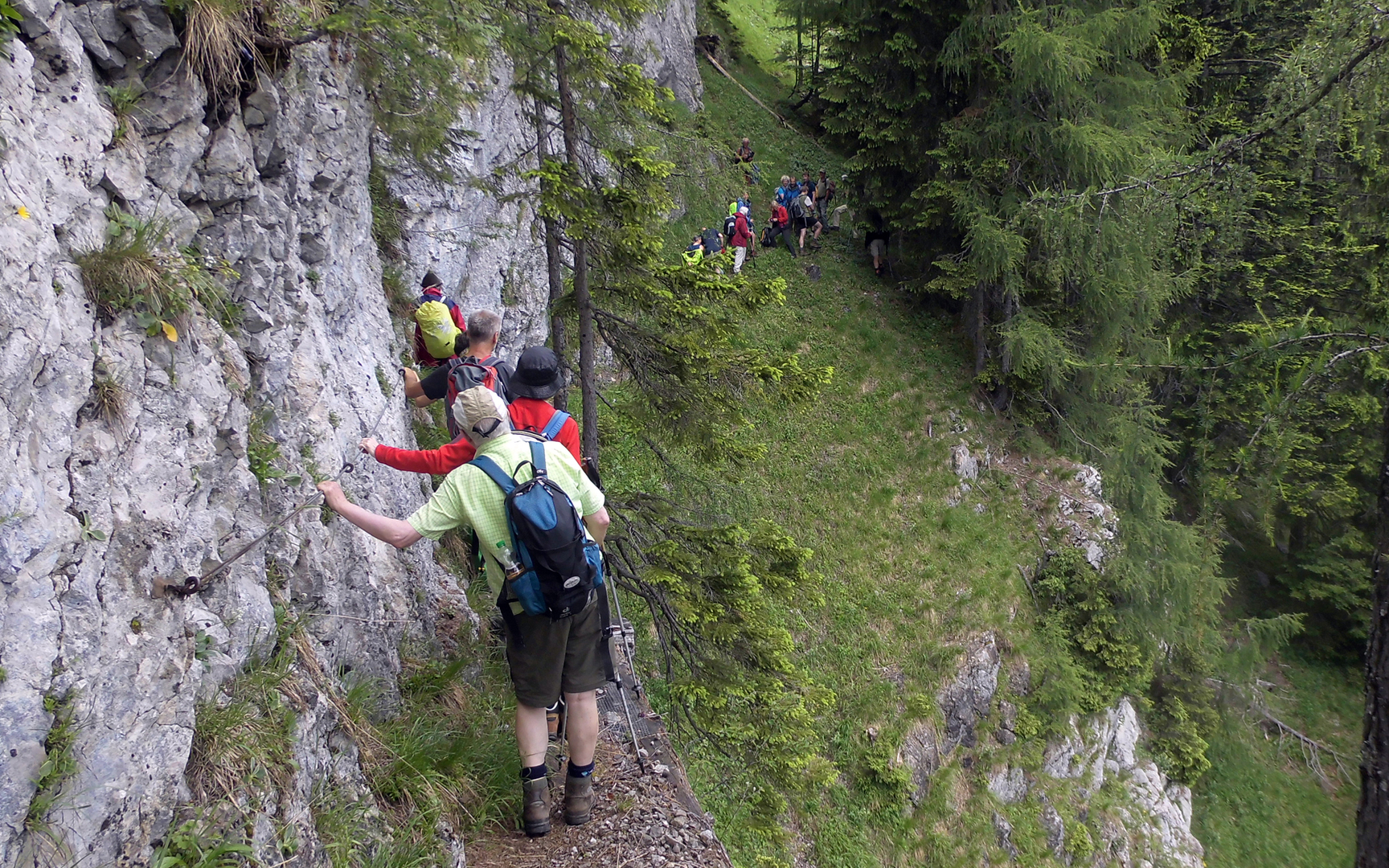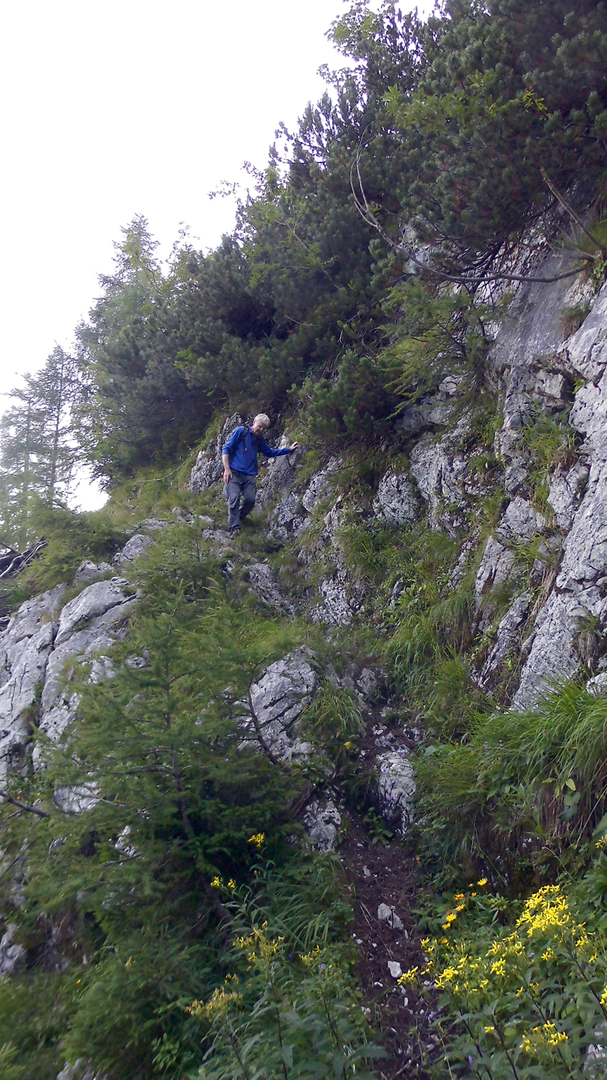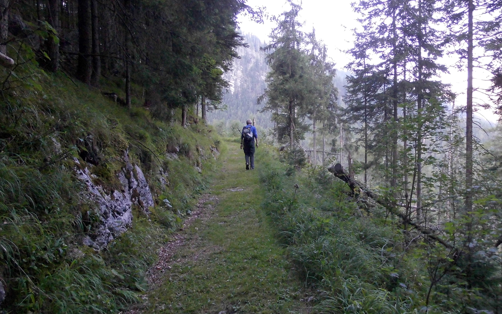 Einschließlich einer hundertminütigen Rast auf der Lindlalm waren wir sieben Stunden unterwegs. Auf Grund der vorausgegangenen extrem nassen Witterung an den Vortagen, waren, speziell im Abstieg, manche Passagen nur mit großem Zeitaufwand zu bewerkstelligen. Fünf Stunden ist sicher ein reeller Wert für die Gehzeit.