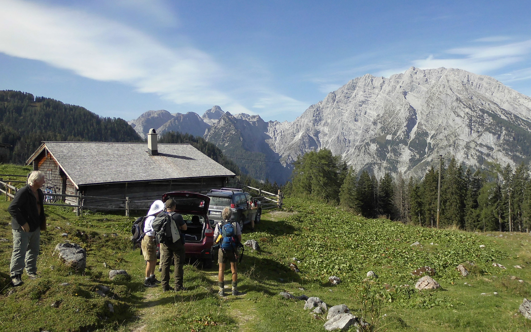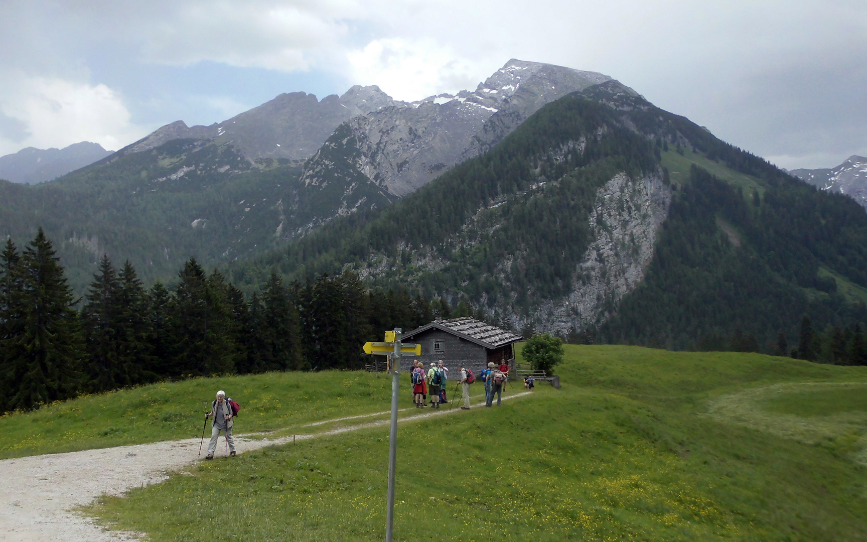 Am 05.08.2015 wanderten wir von der Wimbachbrücke über das Wimbach-Schloss hinauf in die Hochalpscharte. Nach kurzer Rast hinab über Hoch-Alm-Diensthütte, Mitterkaser, Eckau-Alm wieder zurück zur Wimbachbrücke.