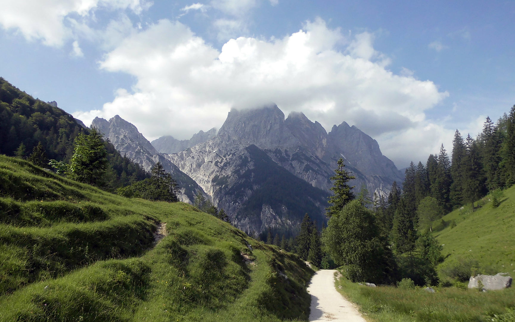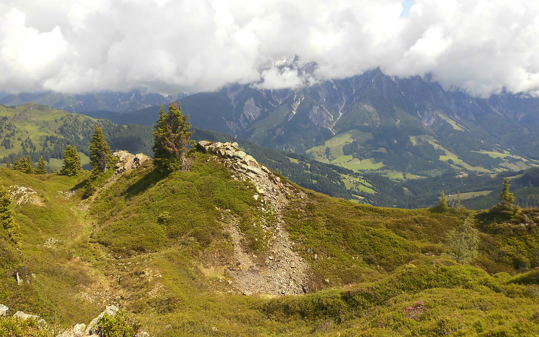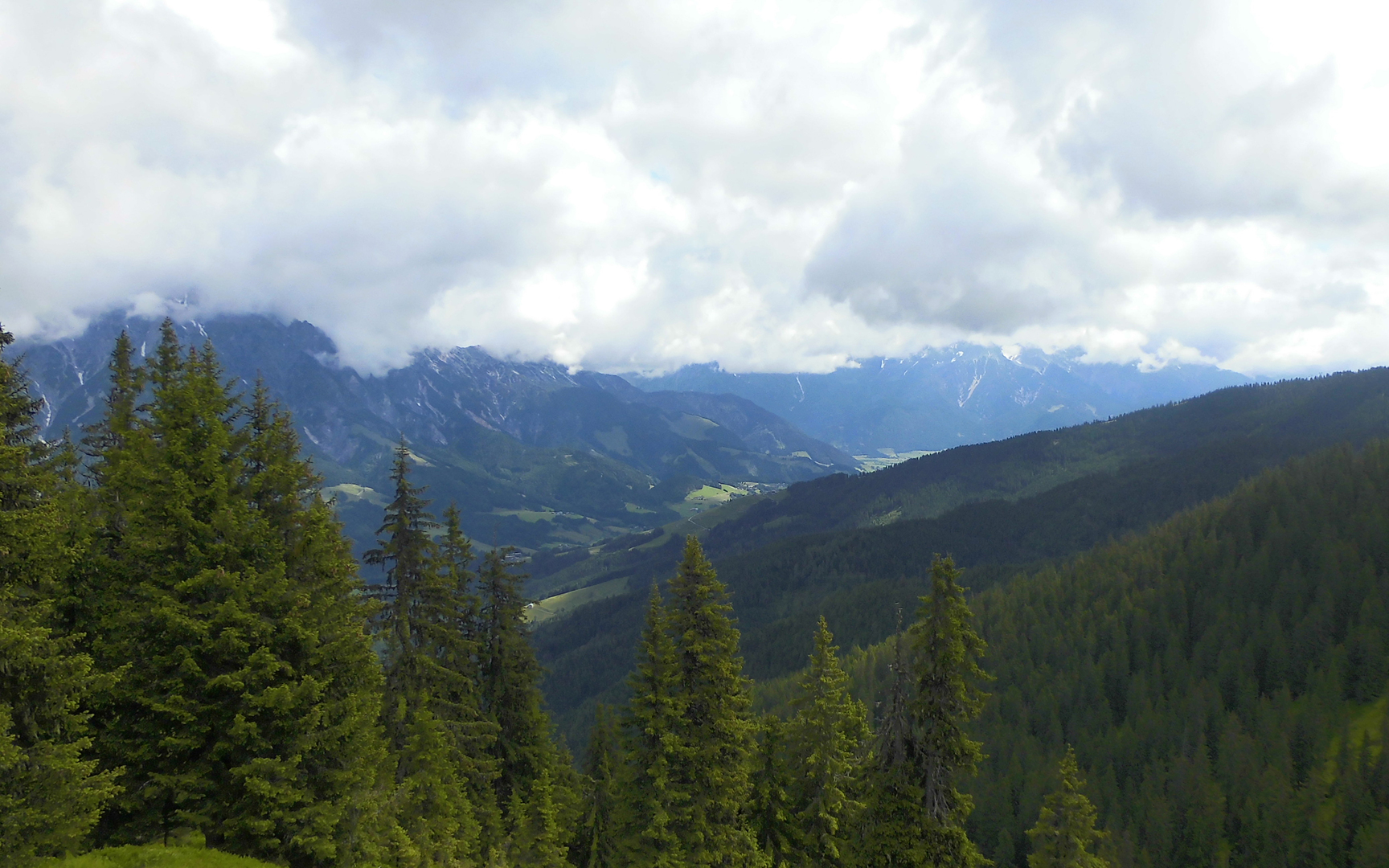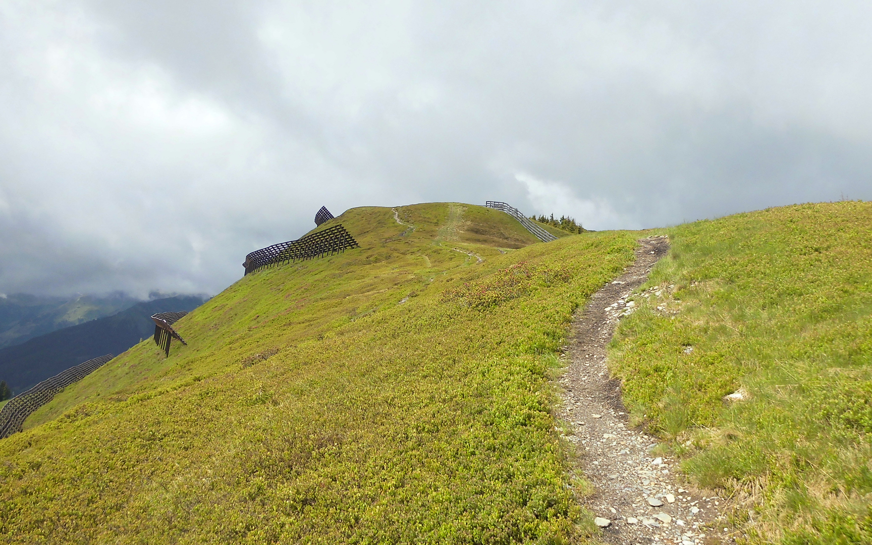 Kurz hinter dem Barnkogel beginnt man den Abstieg über die Spielbergalmen zum Unterberghaus auf 1000 m.