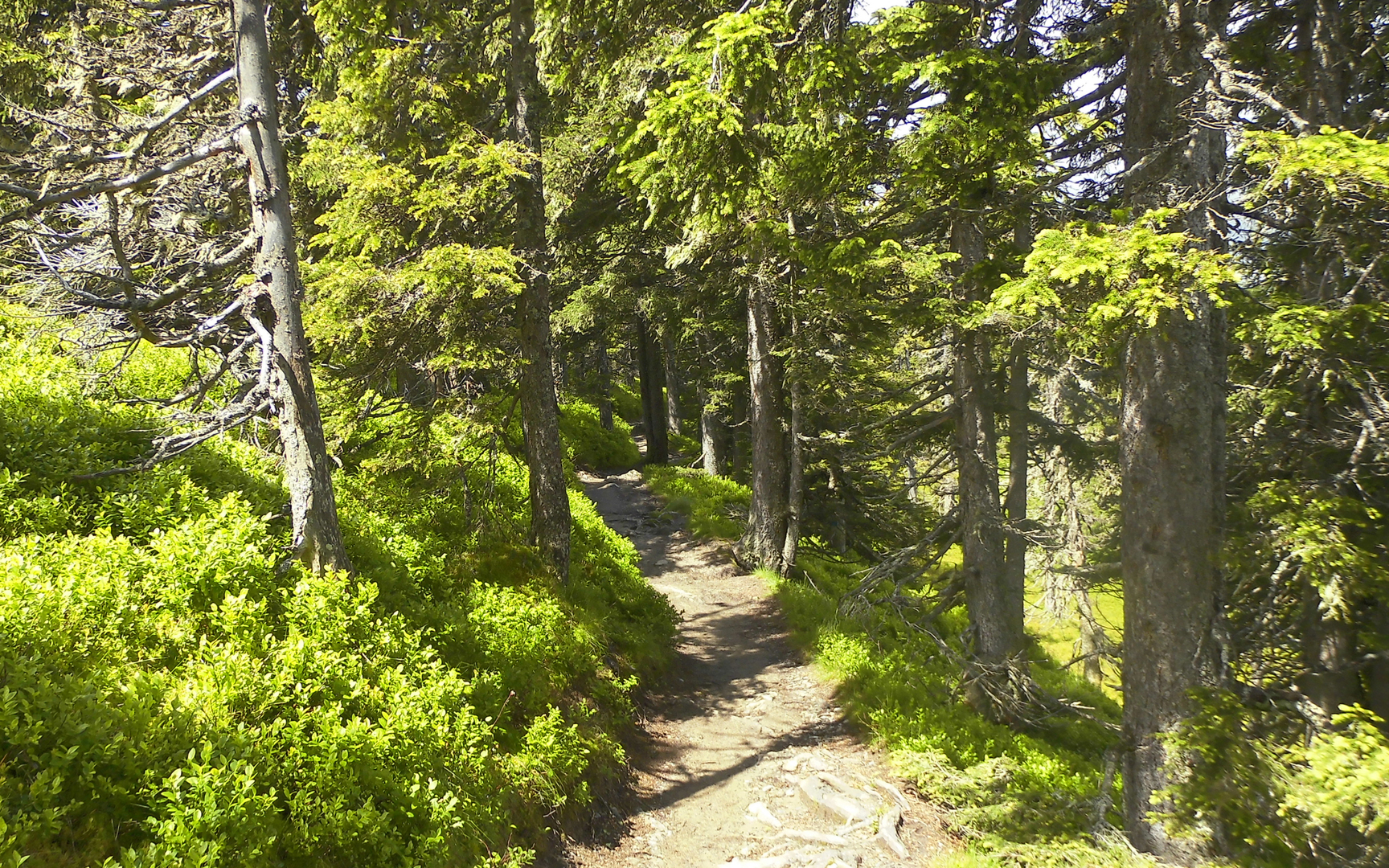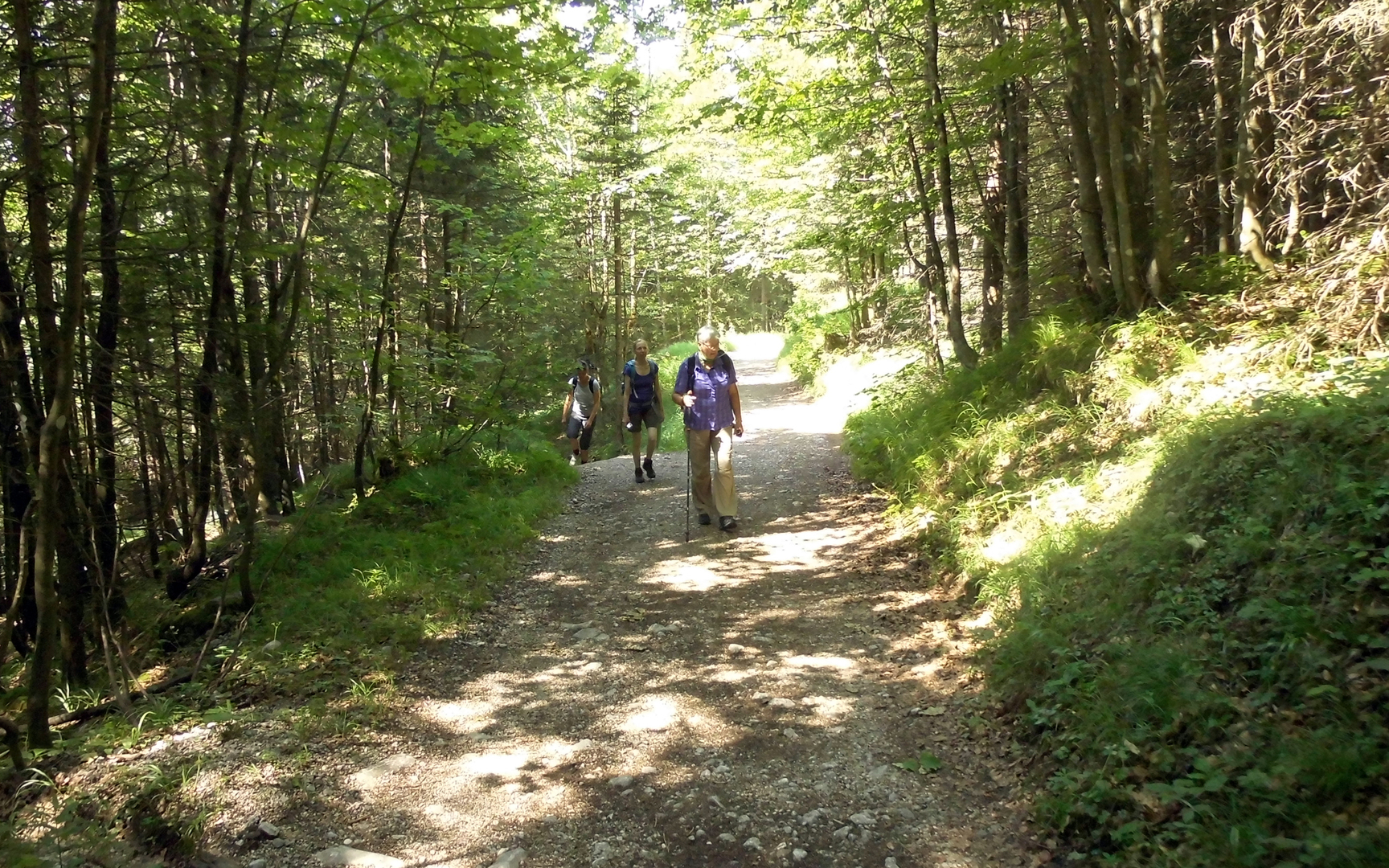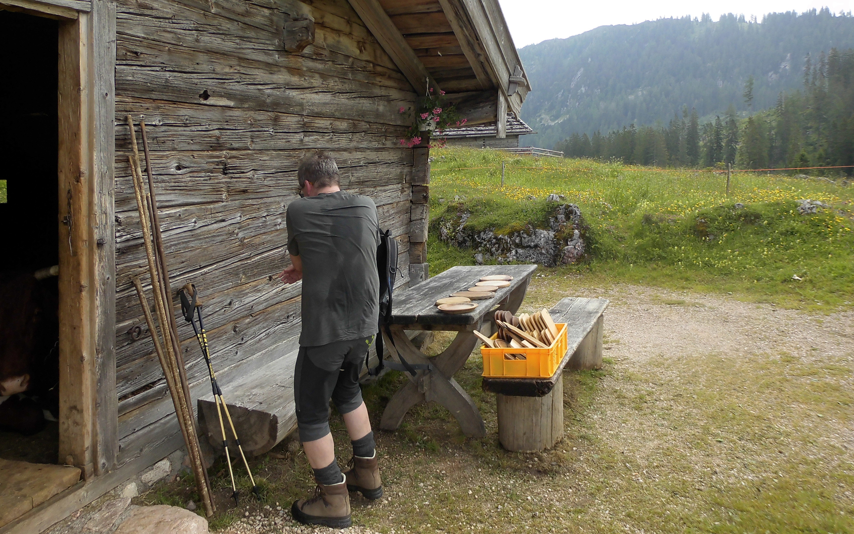 Zurück ging es zunächst durch das Gelände bis zum bequemen Rundweg um den Litzlkogel. Am Jagdhaus vorbei, über den Bockbrucksteig, die Litzlalm zurück zum Hirschbichl. Mit der Gesellschaft machte ich dort noch eine Pause, bevor ich alleine zur Bindalm weiter zog.
