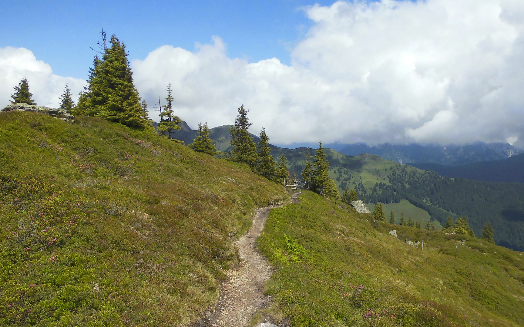 Am 24.06.2015 habe ich mit Jürgen auf dem Höhenweg die Bayerischen Saalforsten umrundet. Mit der Asitzbahn geht es hinauf bis auf 1760 m zur Alten Schmiede. Der Weg führt über die Schönleitenhütte, die Wildenkarhütte, den Kohlmaiskopf bis zum Barnkogel mit 1709 m Höhe. Unterwegs hat man Höhen bis 1910 m zu ersteigen.