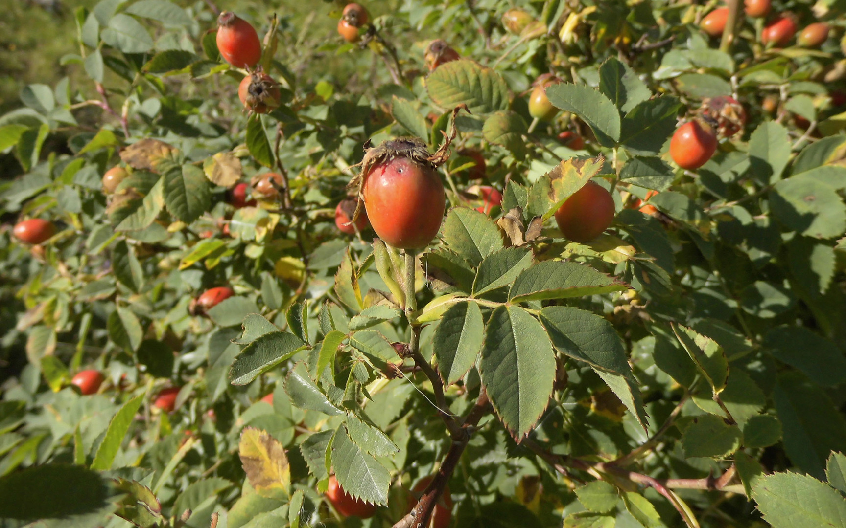 Rosa canina (Hunds-Rose), Rosa subcanina (Falsche Hunds-Rose) und Rosa corymbifera (Hecken-Rose).
