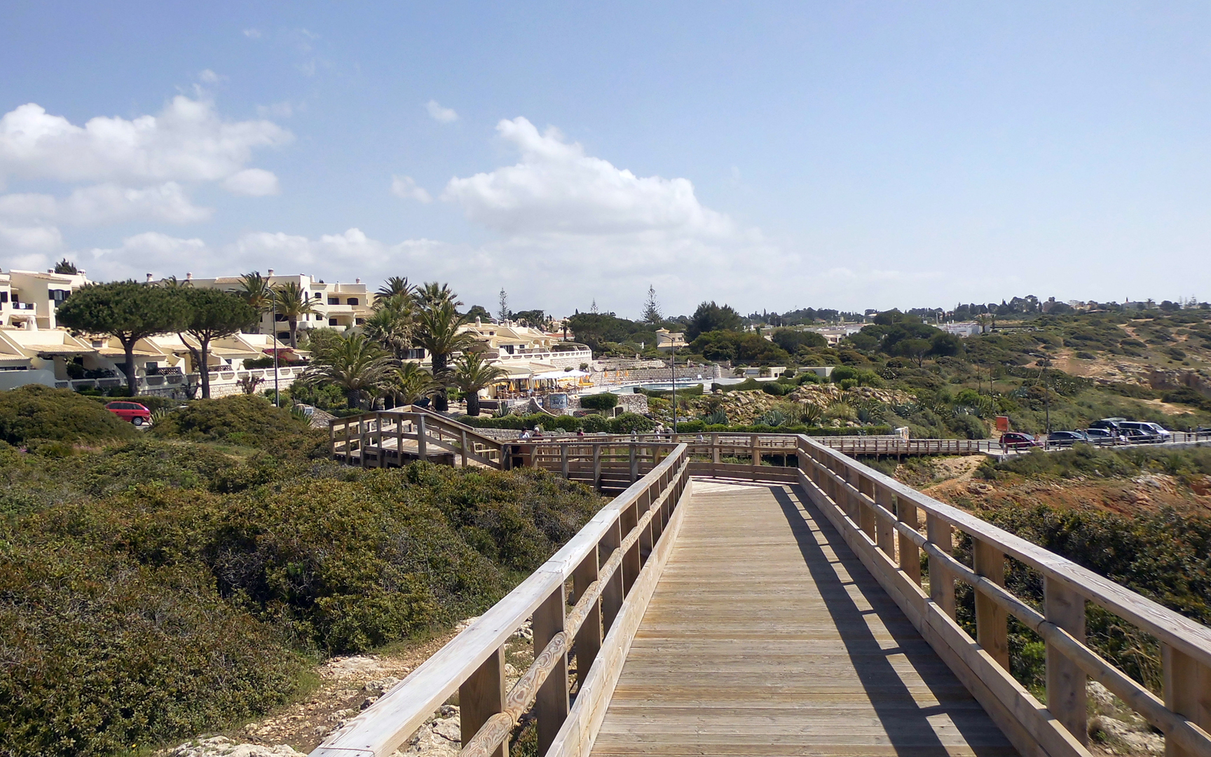 der Nachbarort in östlicher Richtung. Oberhalb der Praia do Carvoeiro auf der östlichen Seite, existiert seit 2014 eine hölzerne Promenade (neudeutsch „walk“), die es möglich macht, küstennah zum Algar Seco zu spazieren. Das war zuvor nur auf einem Wanderpfad möglich, wenn man nicht auf der Straße gehen wollte.