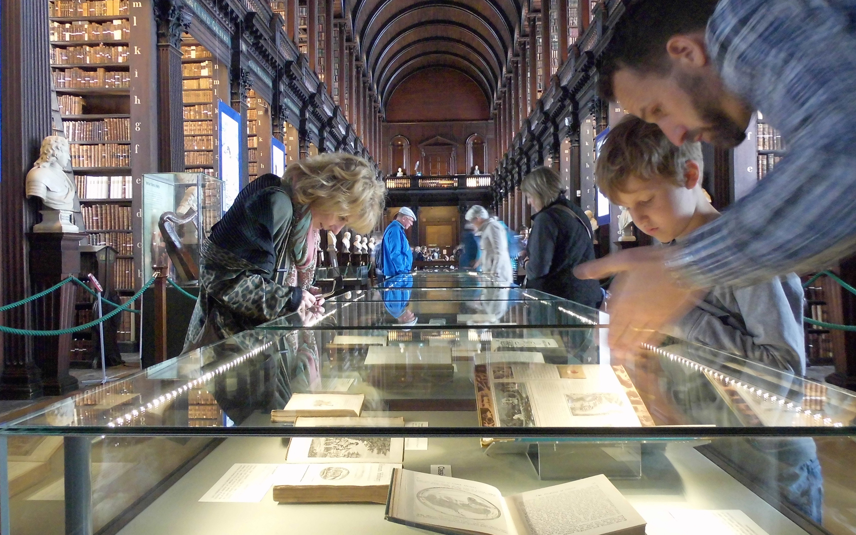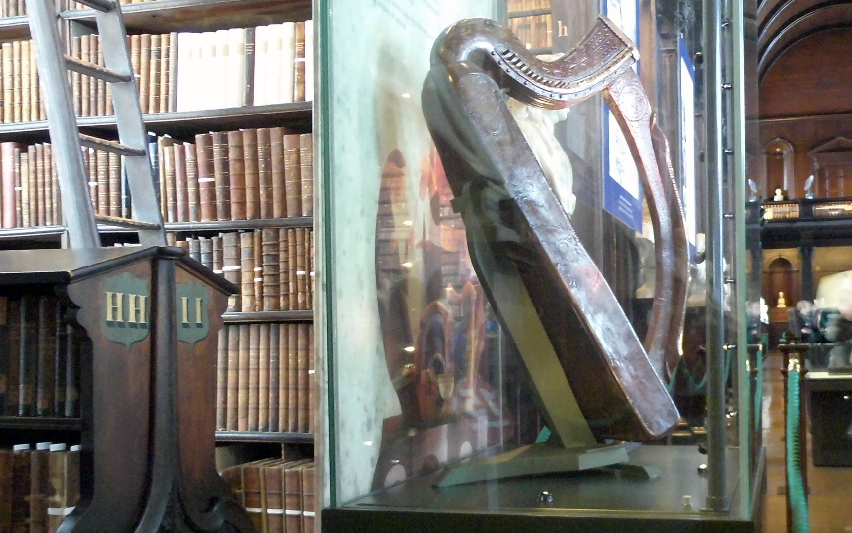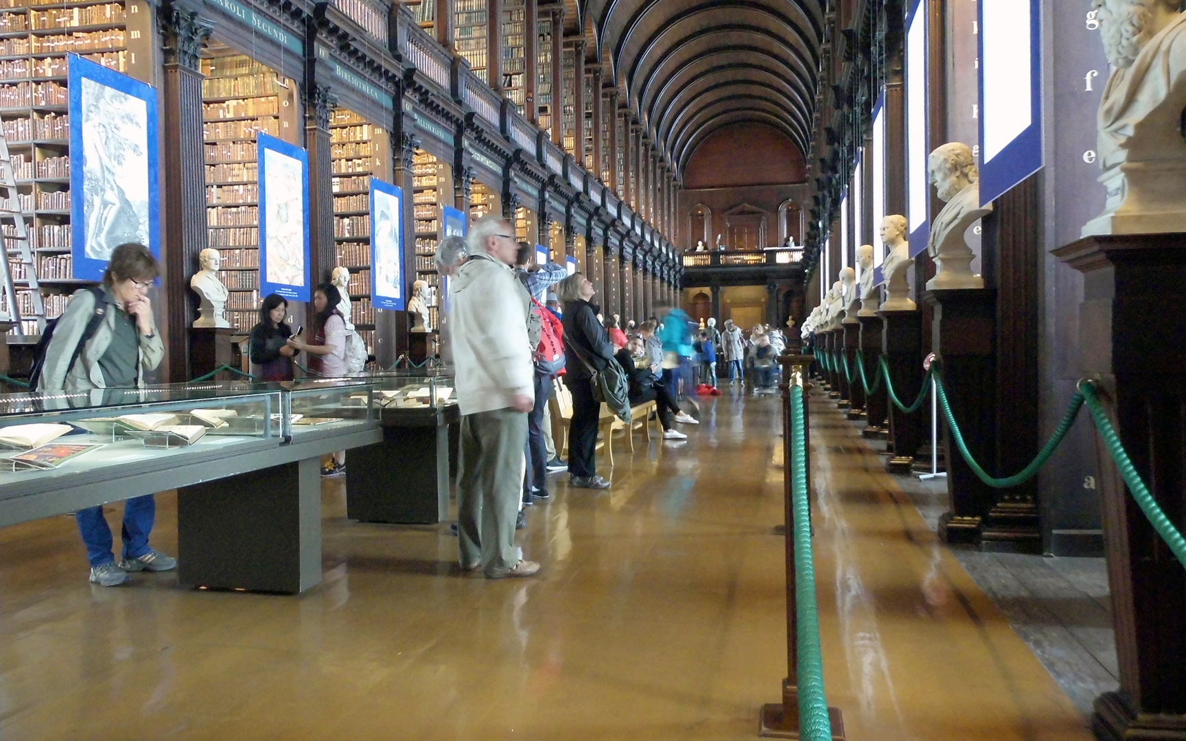 Die Hauptattraktion ist die 1732 gebaute Alte Bibliothek, in der neben 200.000 alten Texten das berühmte Book of Kells, aber auch die älteste Harfe Irlands aufbewahrt werden. Spektakulär ist der Long Room – ein fast 65 Meter langer Raum, in dem die wertvollsten Bücher aufbewahrt werden.
