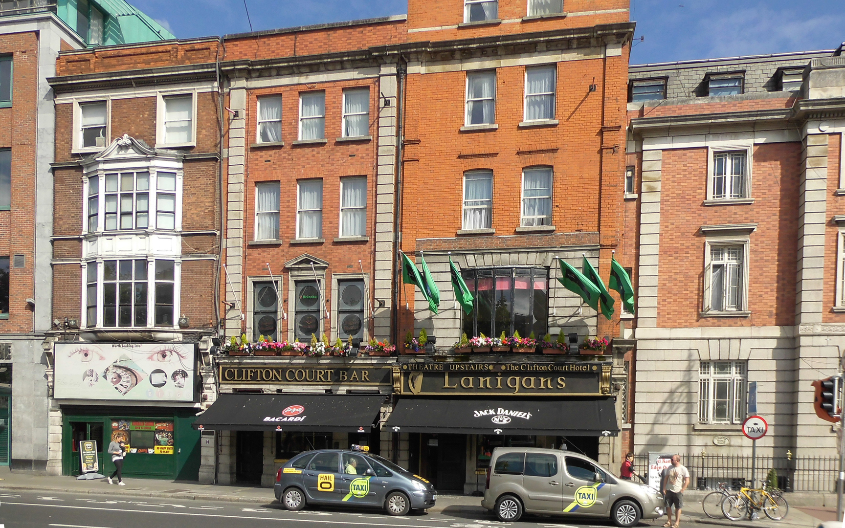 Fünf Tage wohnten wir im Clifton Court Hotel, im vierten Stockwerk nach hinten. Im Erdgeschoss unser Lieblingspub Lonigan’s. Hier haben wir jeden Tag abgeschlossen.