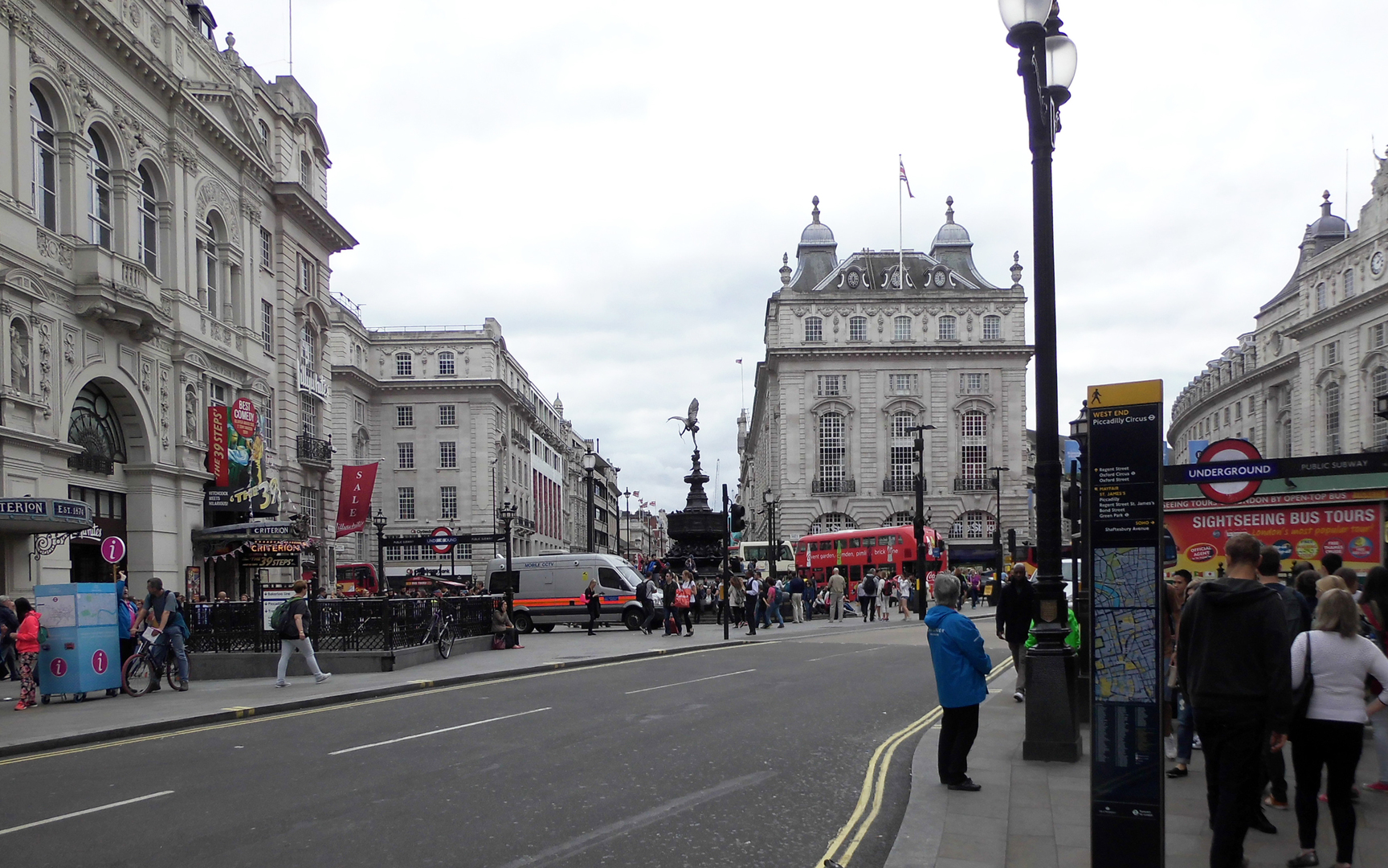 Seit Jahren war unser Lieblingspub in der Innenstadt der am Leister Square. Dieses Jahr erlebten wir eine Enttäuschung! Man hatte es, ohne uns zu fragen, umgebaut. Keine gemütlichen Sitzgelegenheiten mit Tisch, nur noch Hocker und schmale Abstellflächen an den Wänden. Mehr Platz für stehendes Publikum. Die Speisekarte war dann auch entsprechend.